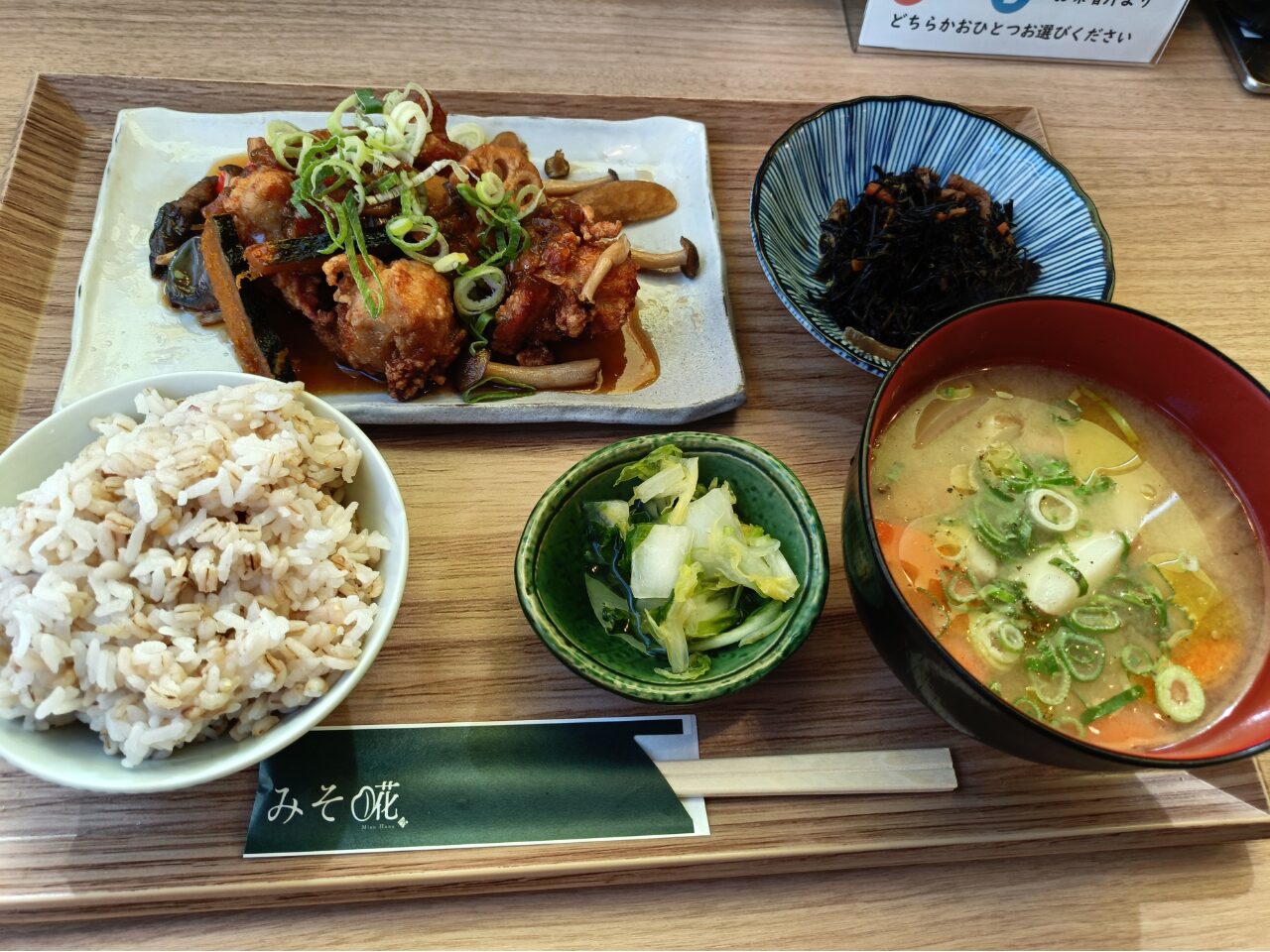 おかずもお味噌汁も、お野菜たっぷり。唐揚げも食べ応え満点でした。