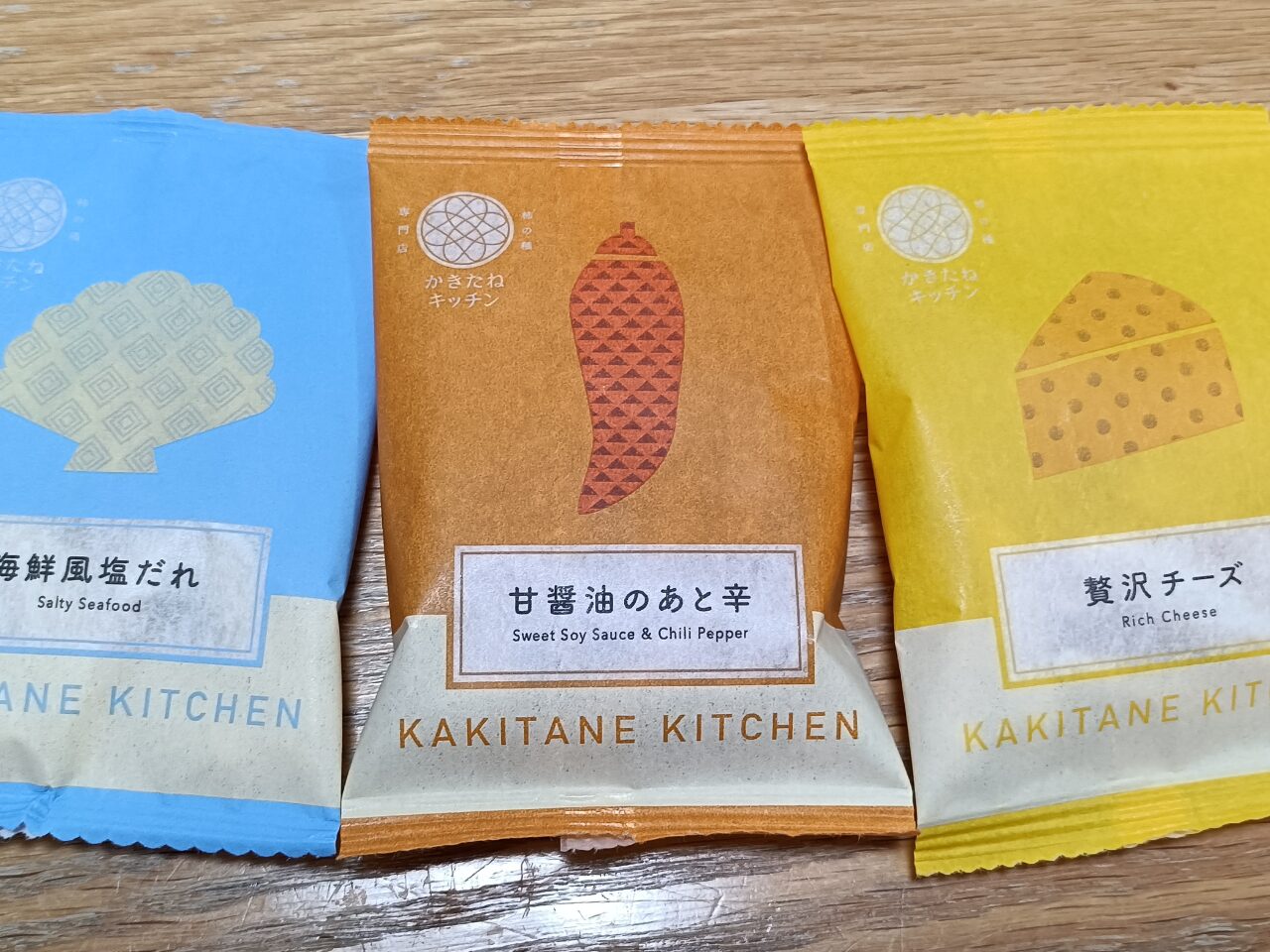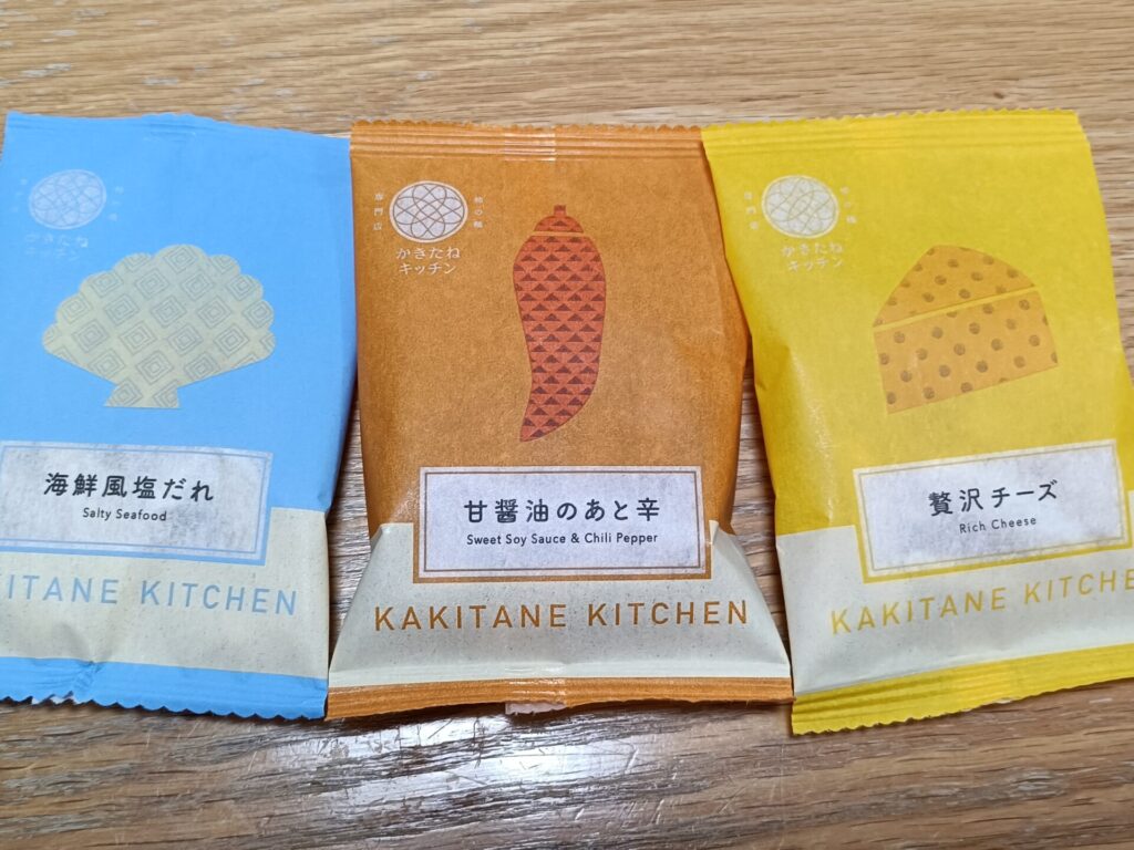 「海鮮風塩だれ」、「甘醤油のあと辛」、「贅沢チーズ」の3種類が入っています。