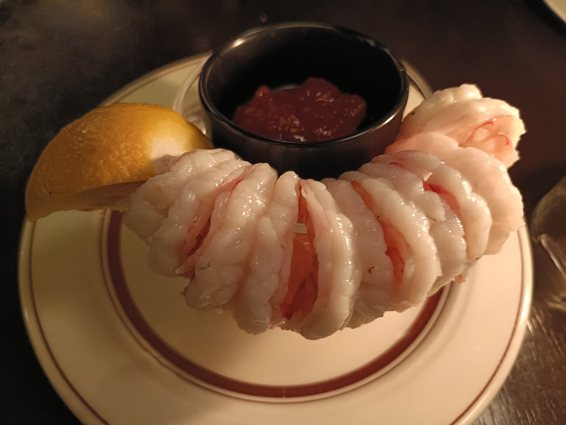 まずはシュリンプカクテル。えびがプリプリでとても美味しい。